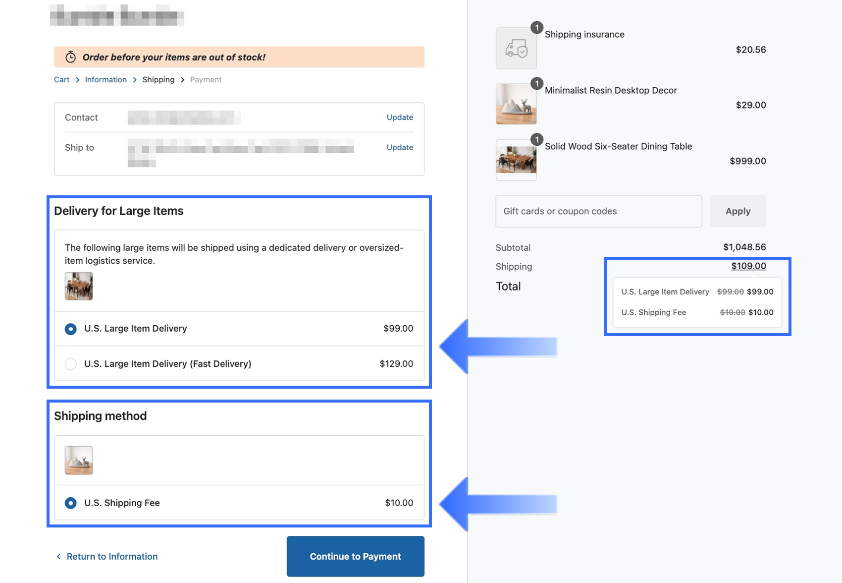 - Verify the configuration: Test the checkout page to ensure shipping options are displayed and selectable as expected.