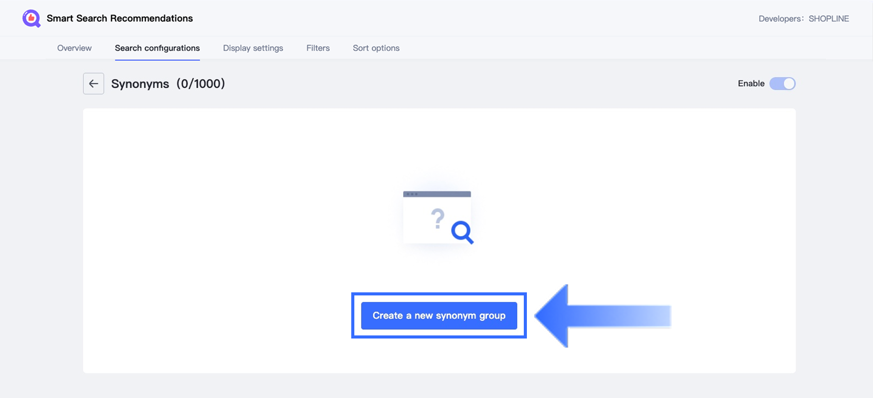 Click Create a new synonym group. You can create up to 1,000 synonym groups.
