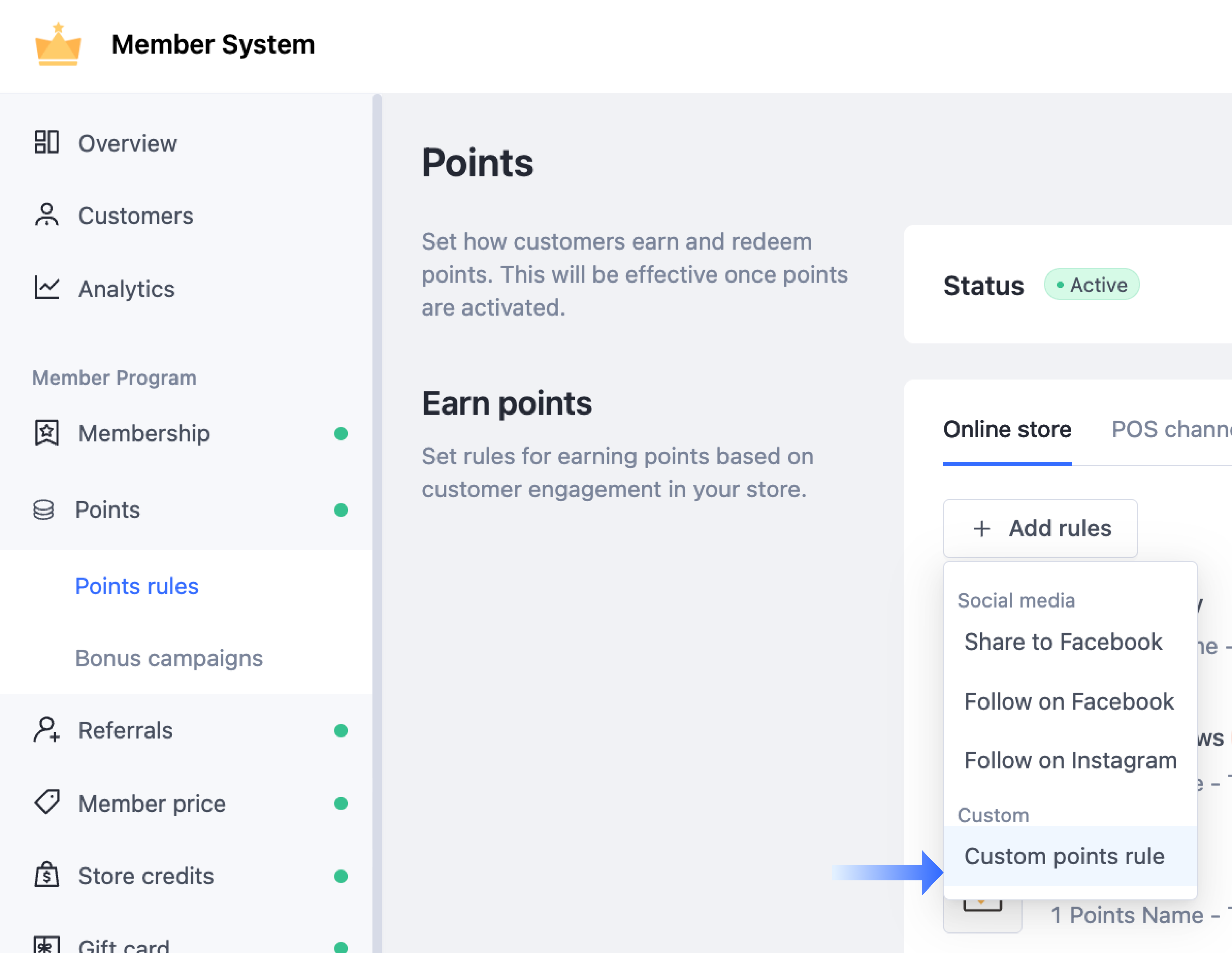 Custom Point Earning Rules in Member System