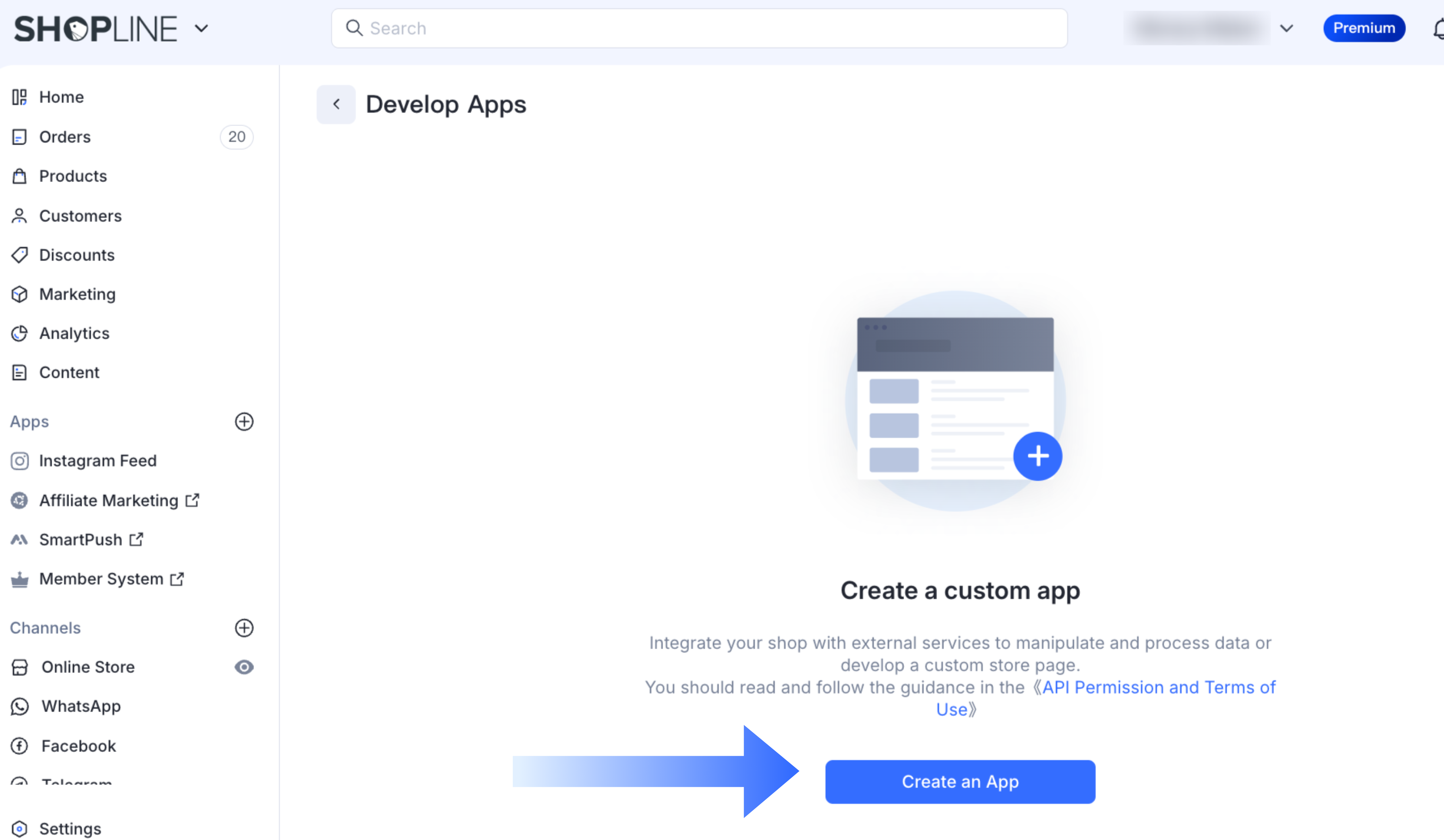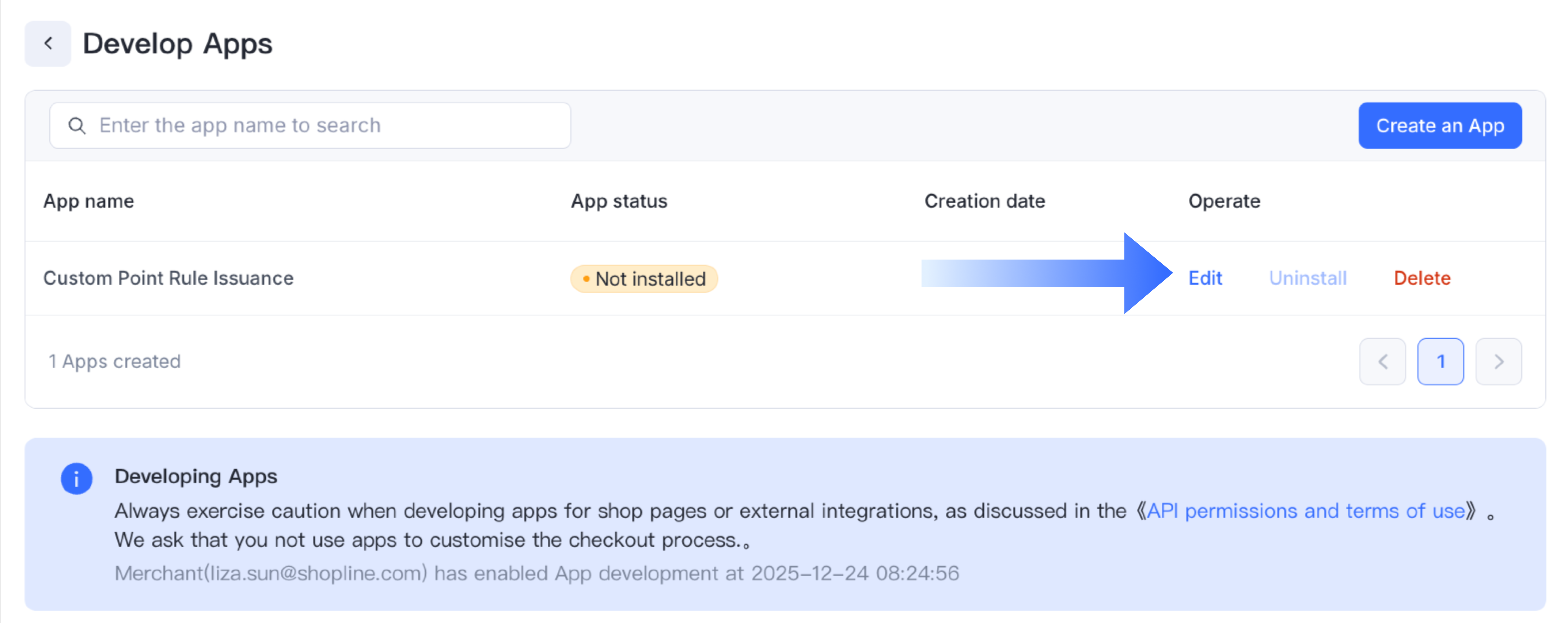 Go to SHOPLINE Admin > Apps > Develop Apps > Create an App.