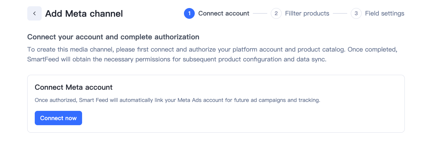 Once connected, Smart Feed will be able to write product data directly into your Meta catalog.