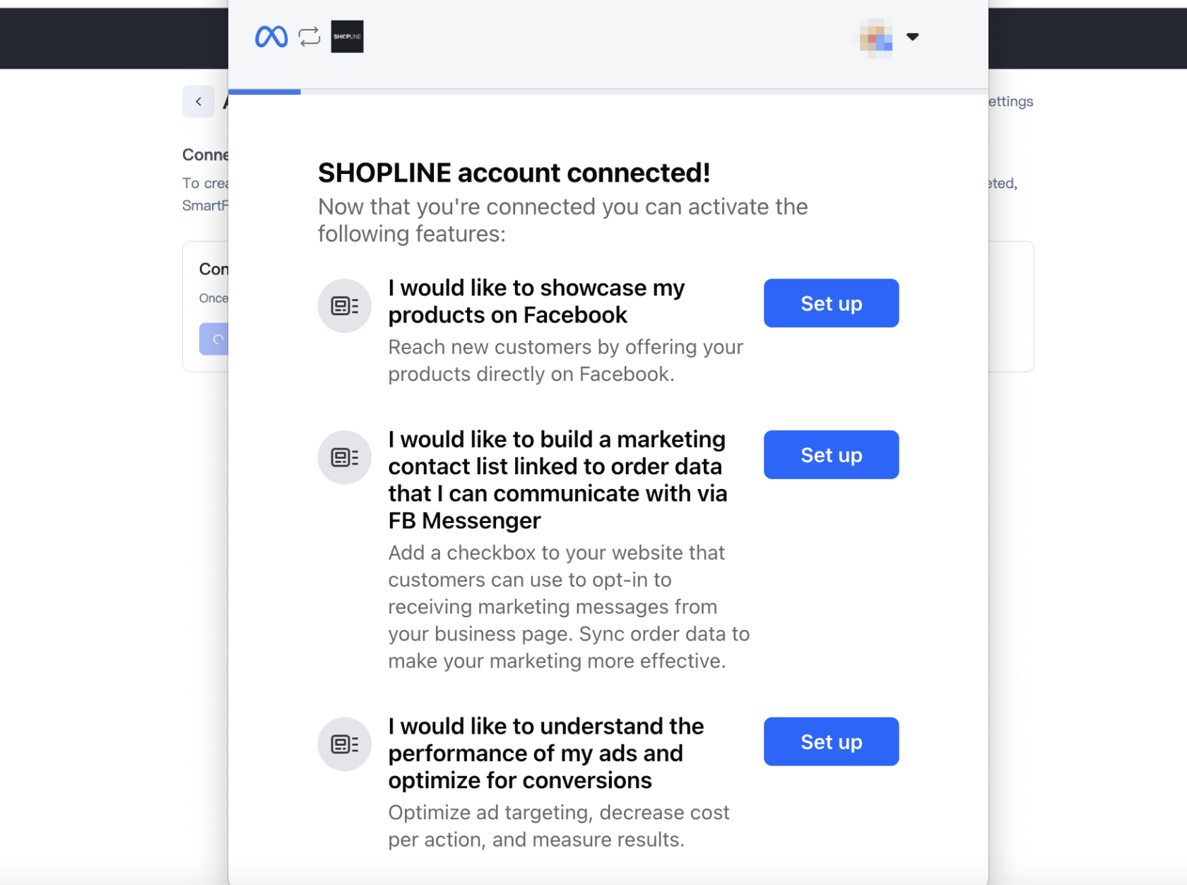 This article provides a comprehensive, step-by-step guide to help you create and manage a Meta product feed using Smart Feed (New). It covers product synchronization, account connection, product filtering, field configuration, product submission, scheduled updates, error troubleshooting, and the feature for automatically syncing SHOPLINE product categories to Meta Product Sets.