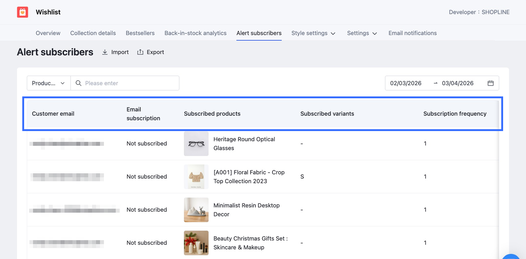 This section explains how to export back-in-stock subscriber data from your SHOPLINE store. Exporting this data is useful for: