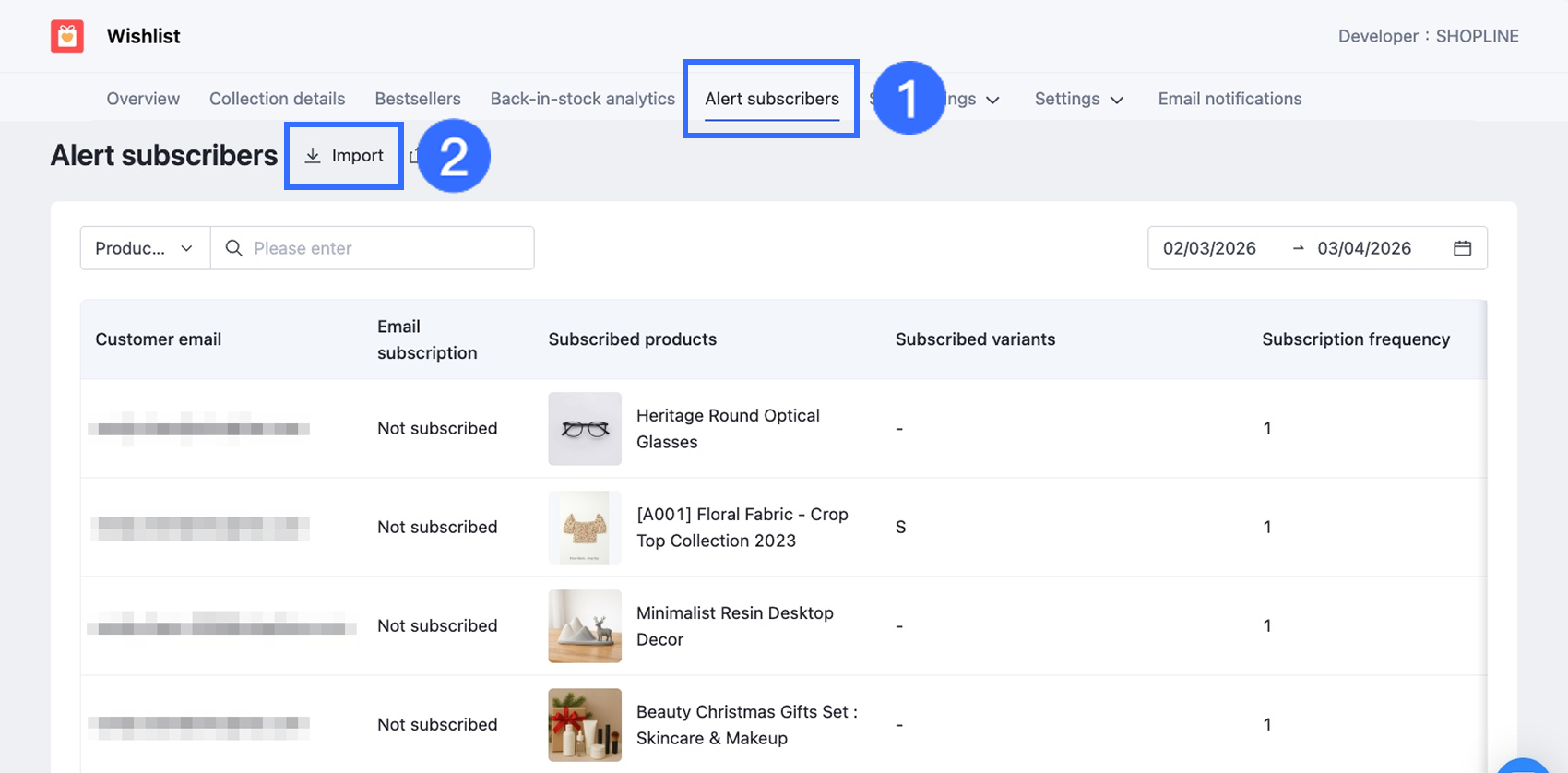 This section explains how to bulk import existing back-in-stock subscriber data into your SHOPLINE store. This feature is particularly useful when: