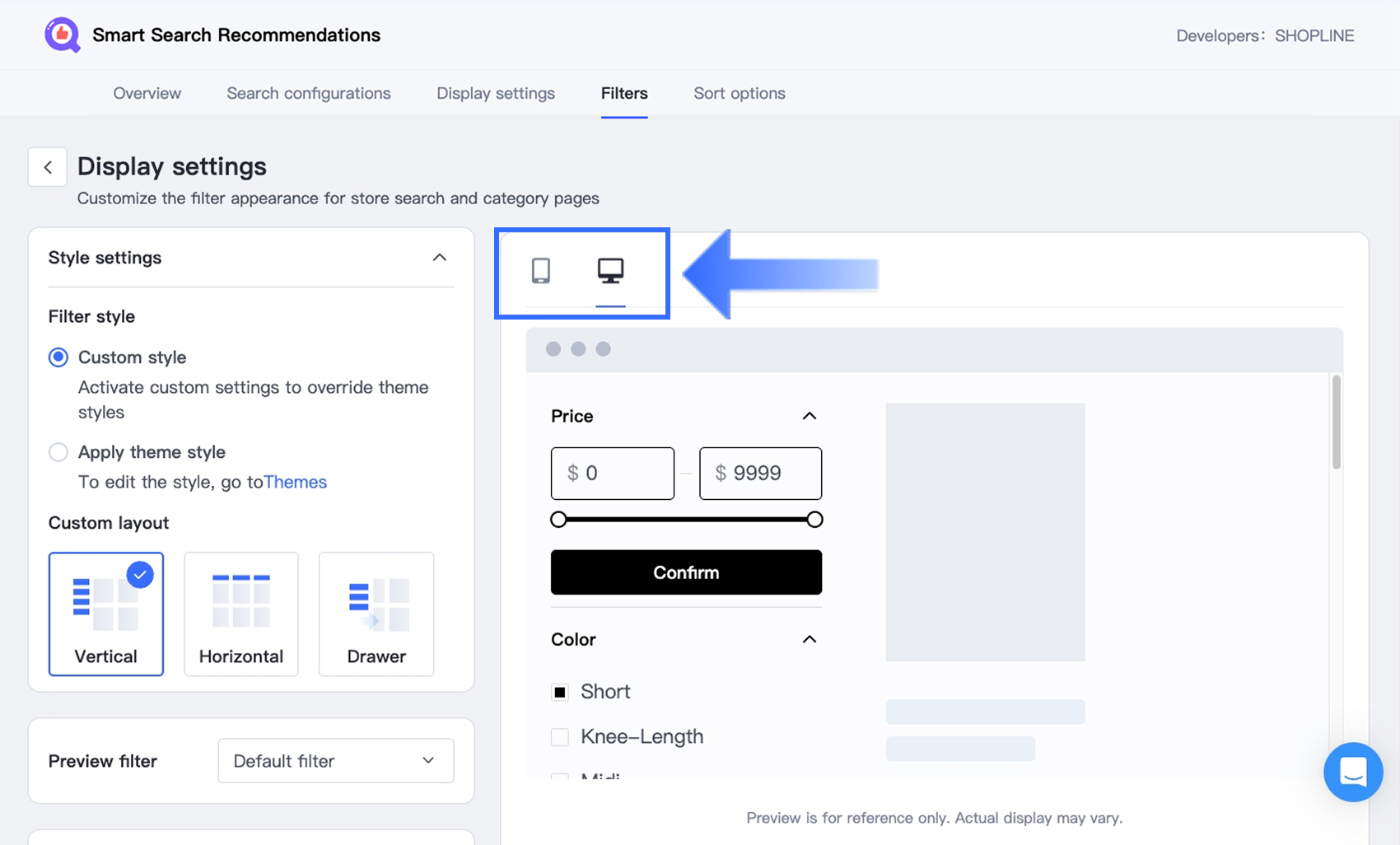 You can preview how filters will appear on different devices. Switch between device views: