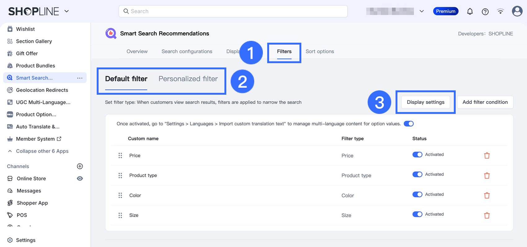 To configure filter display settings, follow the steps below.