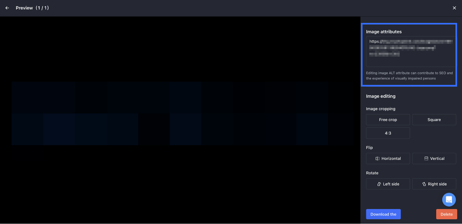 - 右側の画像属性で、現在の画像の属性を編集できます。