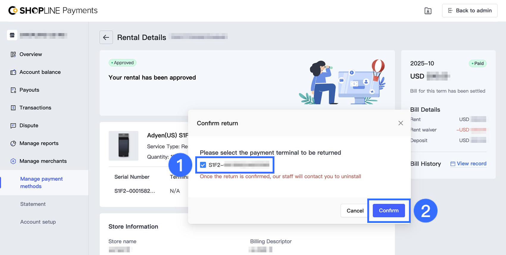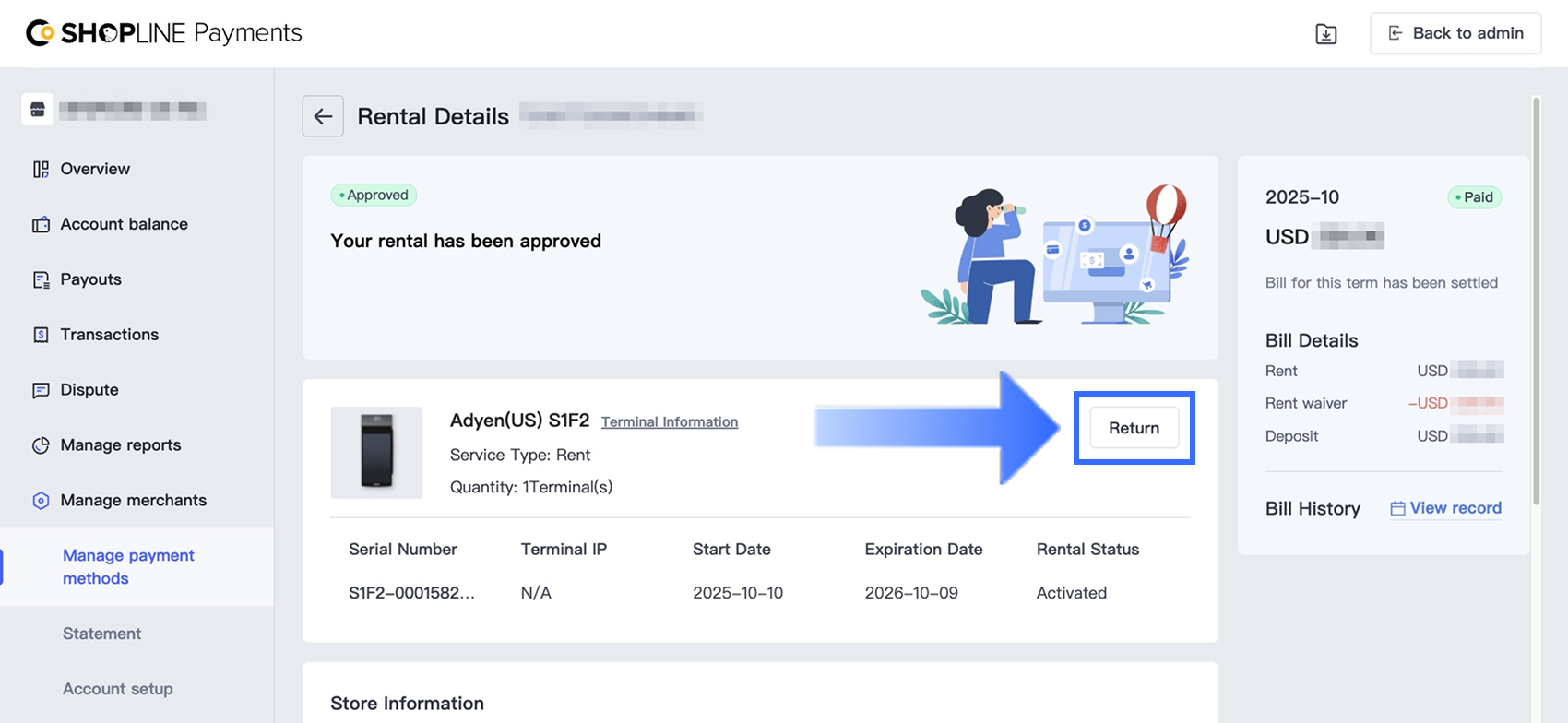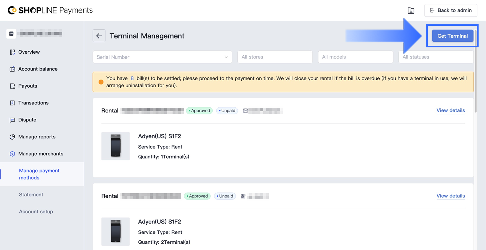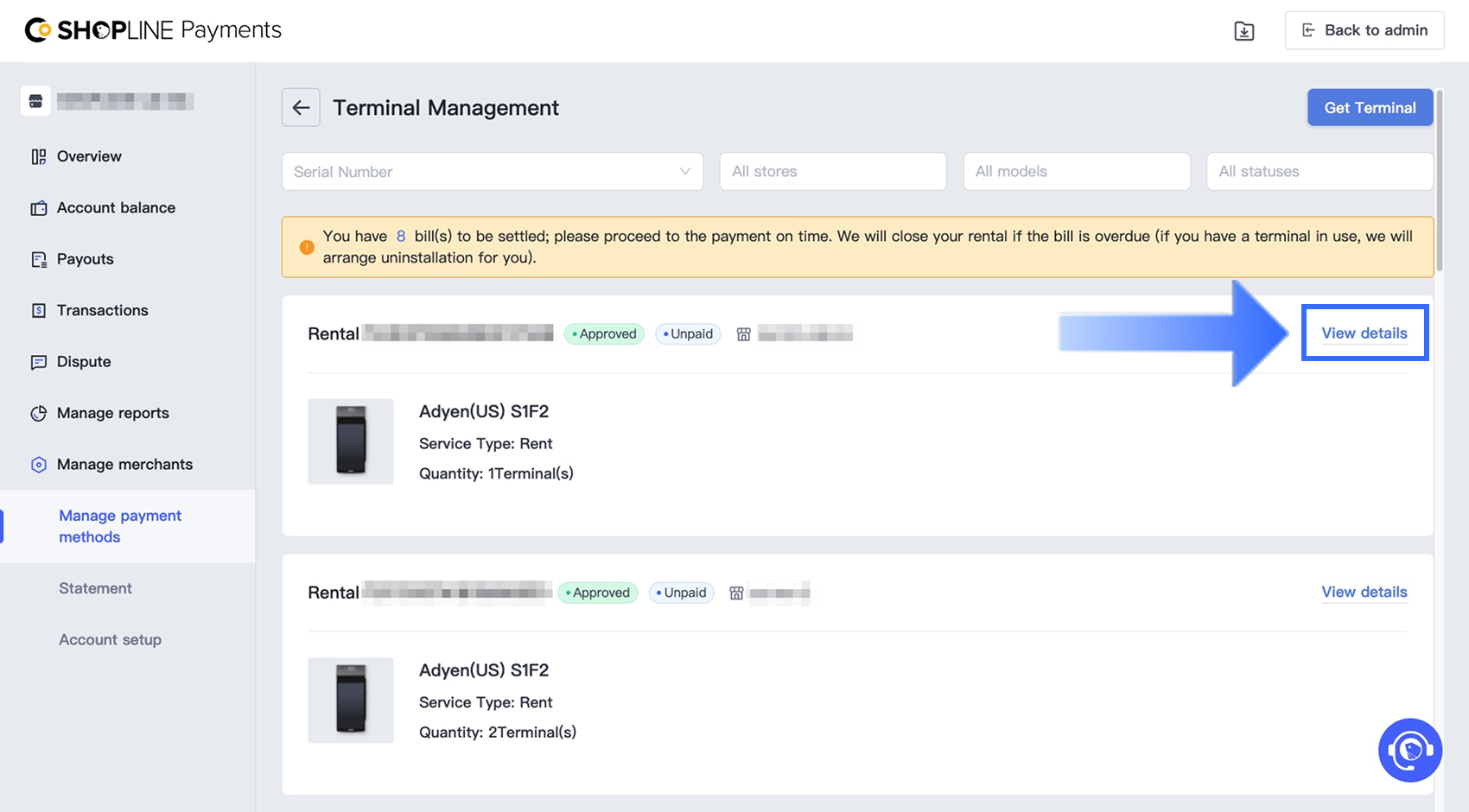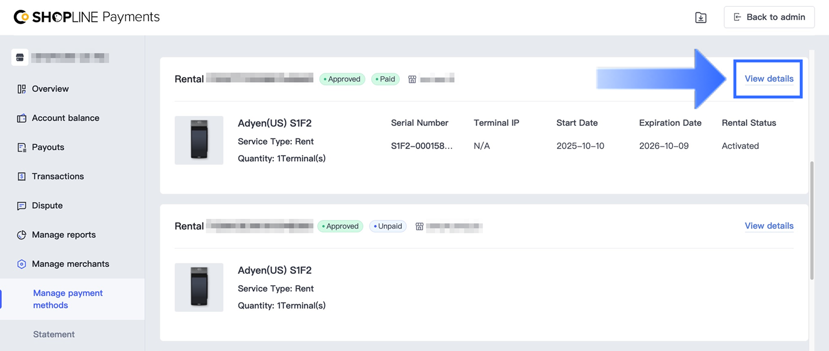SHOPLINEはKYC承認後、約3~5営業日以内に審査を完了します。端末管理 > 詳細を見る でステータスを確認できます。