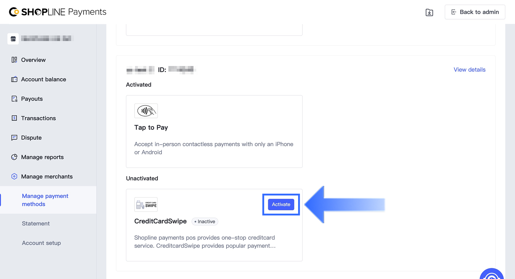 - SHOPLINE管理画面で、POS > 設定 > 支払い > 支払い方法に移動し、有効にするをクリックします。