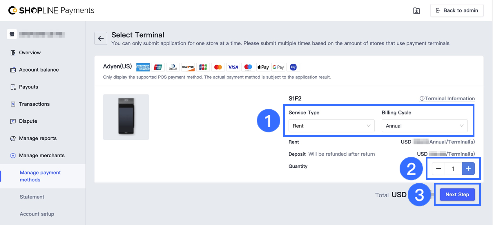 SHOPLINEペイメント(POS)アカウントが有効化され、KYC認証が承認されたら、POS決済端末の申請を進めることができます。