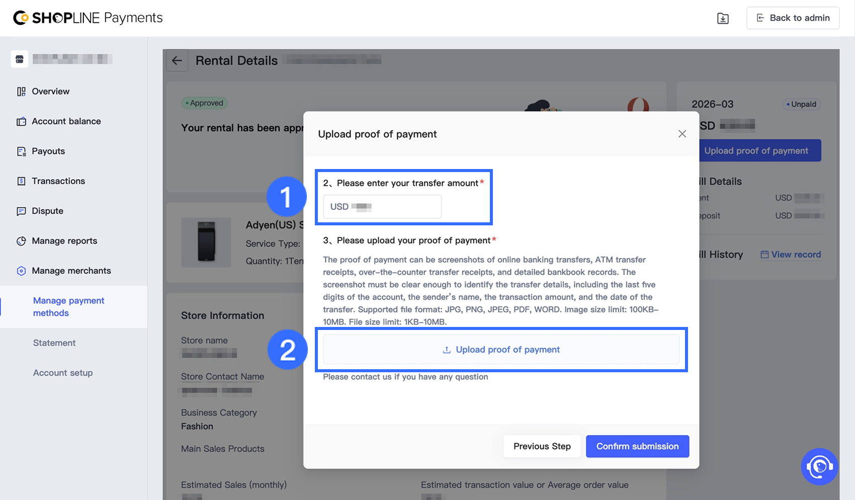 振込金額を入力し、支払い証明をアップロードします。