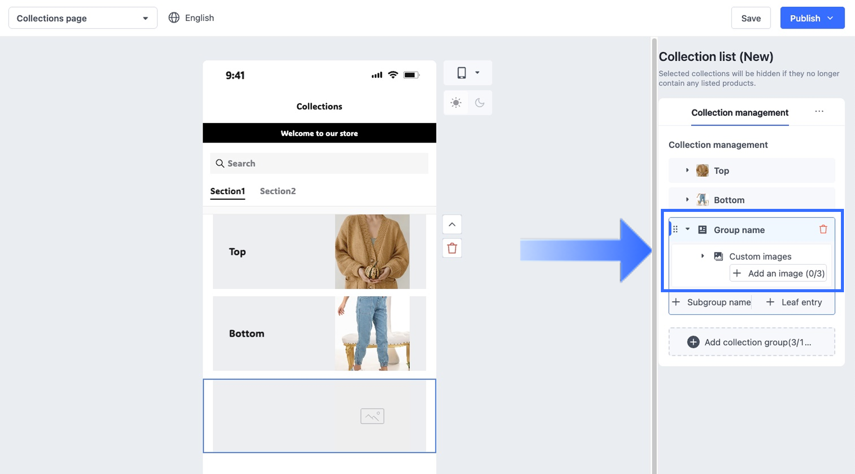 - カテゴリグループの画像比率: カテゴリグループの項目の画像比率を選択します(1:1、2:3、3:4、または元の比率)。