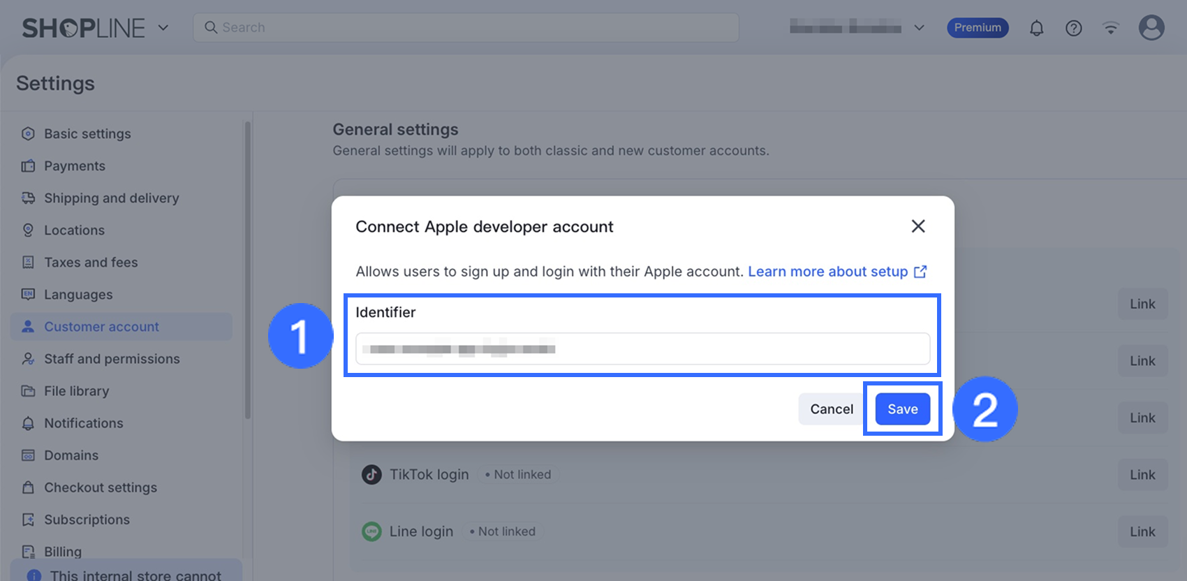 - 設定内容を確認し、「Done」をクリックします。後でSHOPLINE管理画面で設定するために、Identifierをコピーして保存してください。