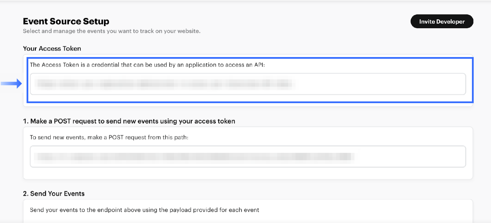 画面の指示に従ってイベントソースのセットアップを完了します。次に、イベントソースのセットアップの下にあるアクセストークンをコピーします。