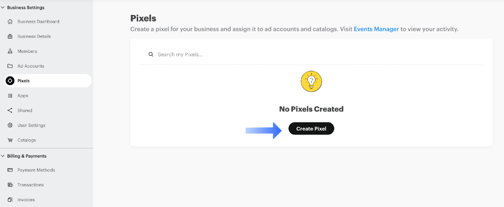 Pixelセクションに移動し、Create Pixelをクリックします。