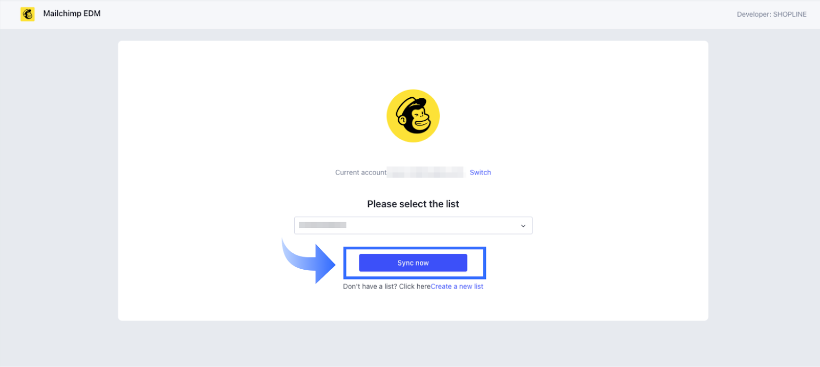次に、MailChimpアカウントをSHOPLINEストアに接続します: