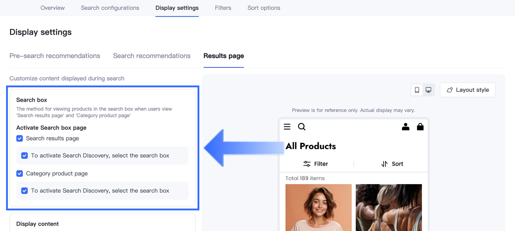 右上のレイアウトスタイルボタンをクリックして、レイアウトテンプレートと商品カードの表示をカスタマイズし、検索推薦結果の視覚的な魅力を高めましょう。