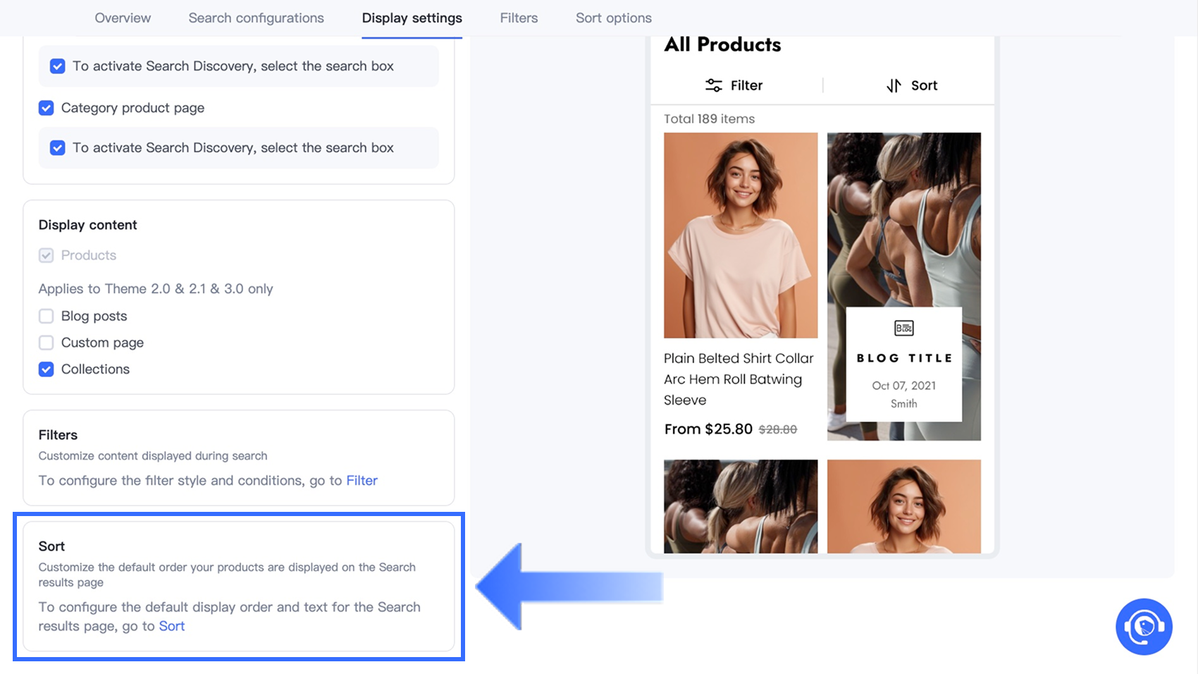結果ページセクションでは、ユーザーが検索を実行した後の検索結果の表示方法を設定できます。表示するコンテンツタイプの選択、フィルターの設定、並べ替えルールの定義が可能で、顧客が必要なものを素早く見つけられるようにします。
