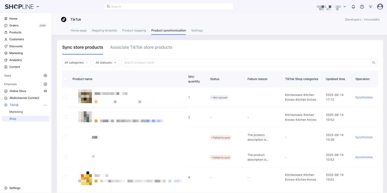 - 保留中のリスティングを処理する(オプション):元のTikTok Shopアプリで、同期されていないか、同期に失敗した商品を処理してください。あるいは、TikTok Shopをマルチチャネルコネクトに移行した後に再リストすることを選択できます。
