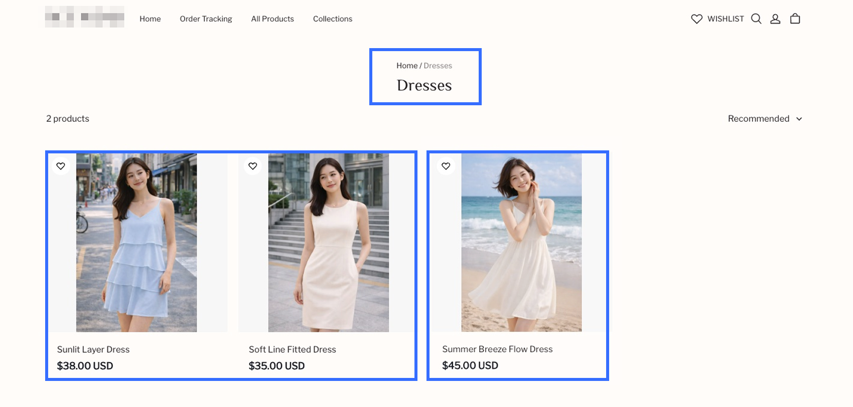次に、カテゴリツリーの階層を以下のように設定しました:Women’s Wear → Dresses → Summer New Arrivals