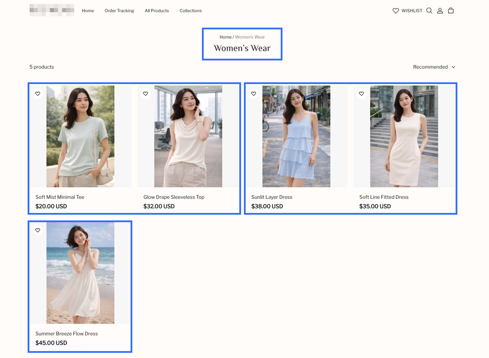 Women’s Wearは最上位カテゴリのため、自身のおよびすべてのサブカテゴリから商品を表示します。