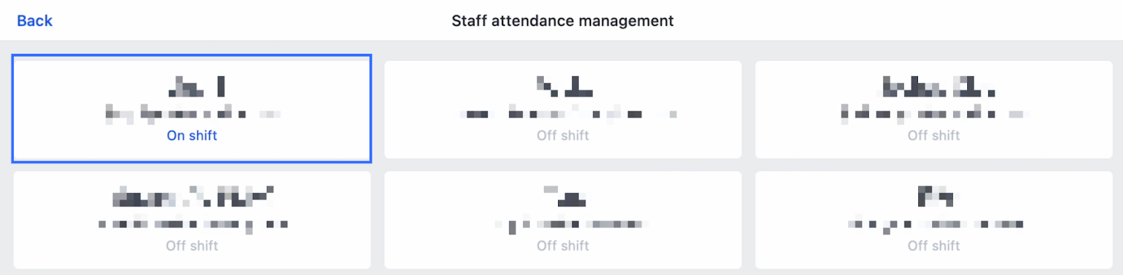 - スタッフの打刻:スタッフは自分のアカウントを選択し、POS端末でユニークなPINを入力することで、「出勤」と「退勤」の操作を迅速に行います。