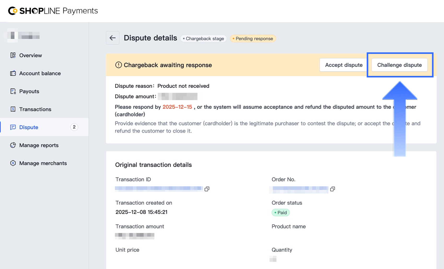 - 発行銀行がSHOPLINEペイメントを通じてあなたに紛争を通知します。