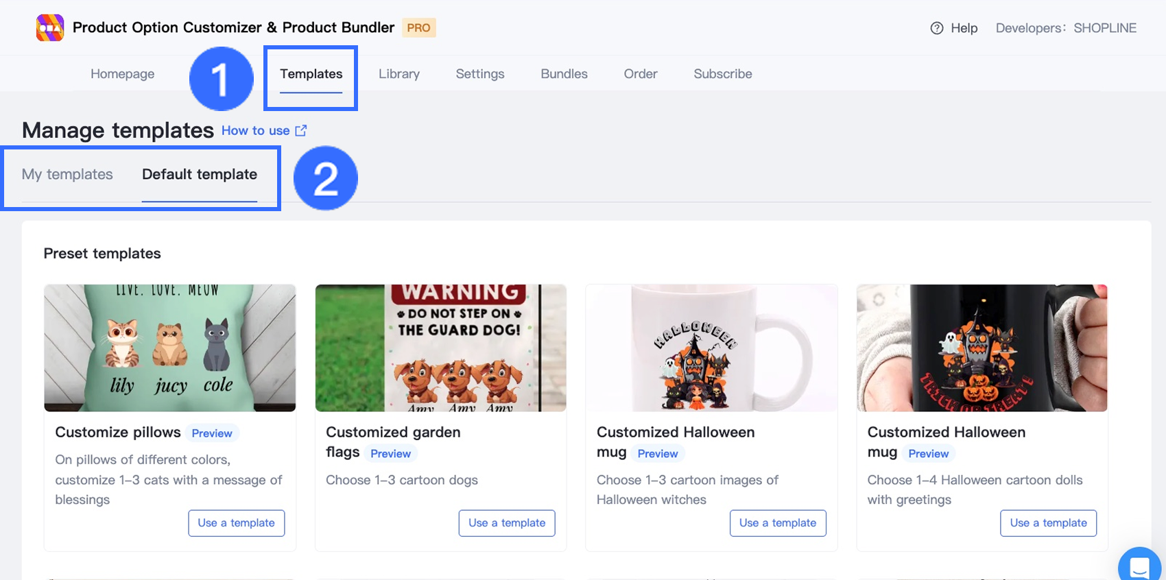 商品カスタマイザー:カスタマイズ商品用テンプレートの管理方法