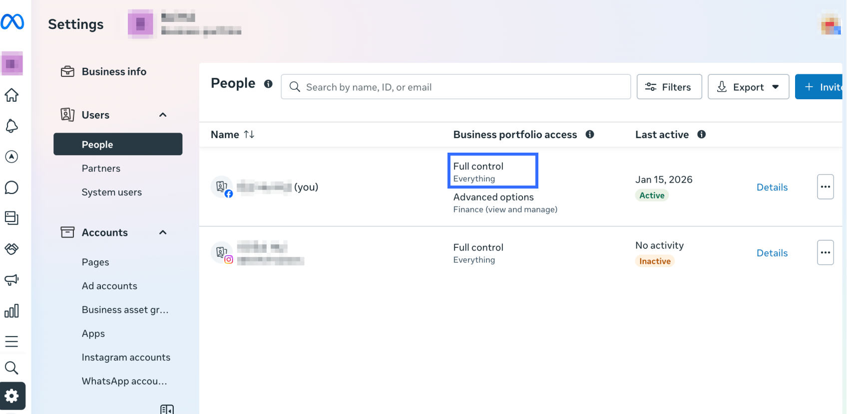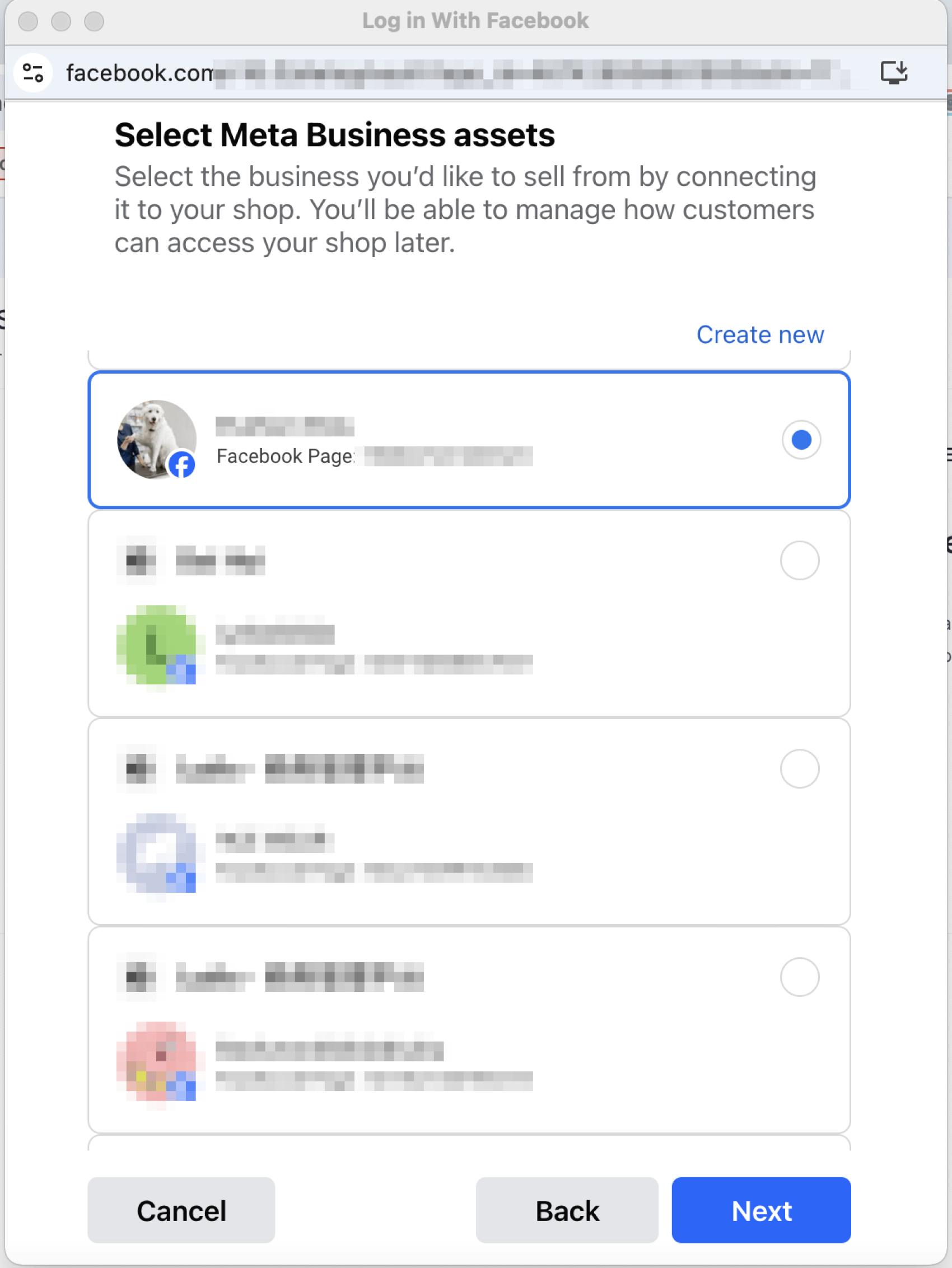 次に、Meta Business Extension(MBE)を通じて資産を接続します: