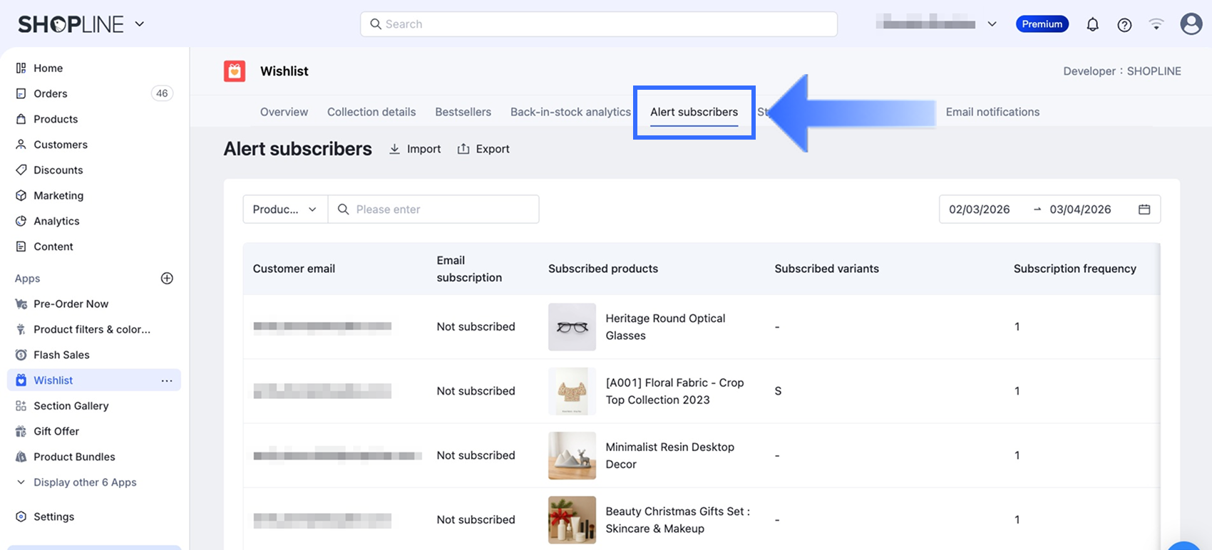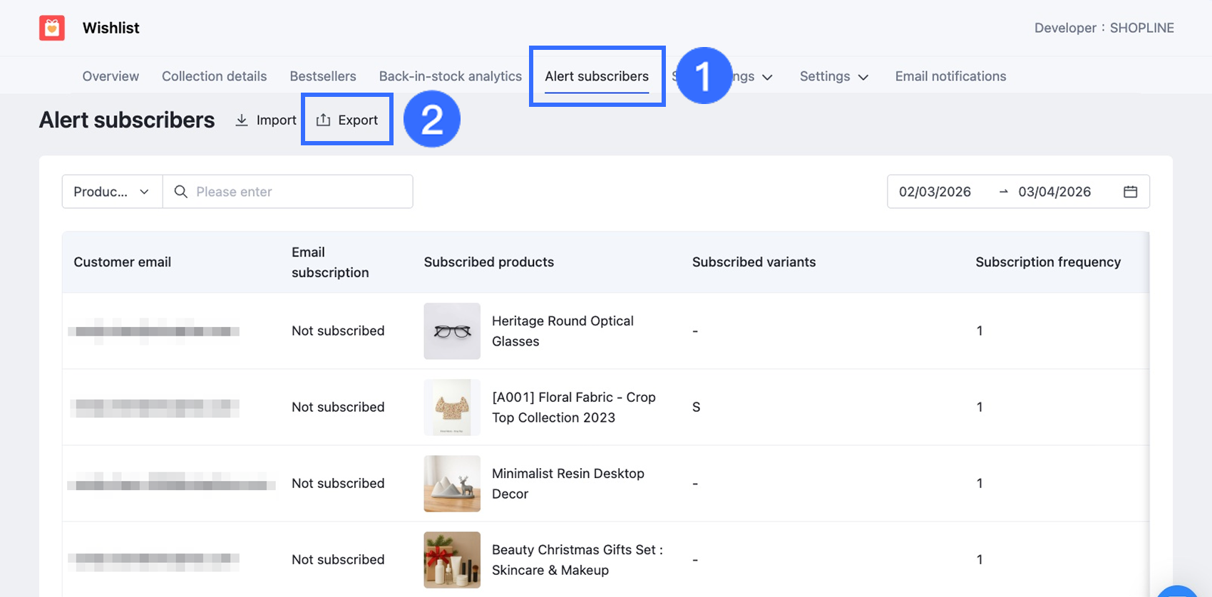 このセクションでは、SHOPLINEストアから再入荷通知購読者データをエクスポートする方法を説明します。このデータのエクスポートは以下の用途に役立ちます: