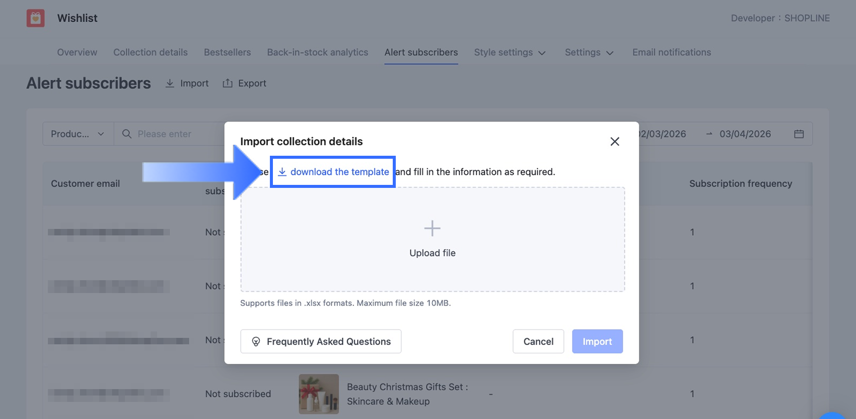 このセクションでは、既存の入荷通知購読者データをSHOPLINEストアに一括インポートする方法を説明します。この機能は特に以下の場合に便利です: