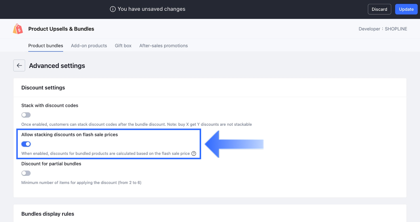| Note: 顧客が以前にタイムセールに参加し、すでに購入制限に達している場合、システムはバンドル計算時に制限を超える数量を自動的に除外します。バンドルが有効かどうかは、高度な設定の部分バンドルの割引オプションが有効かどうかによります。 |