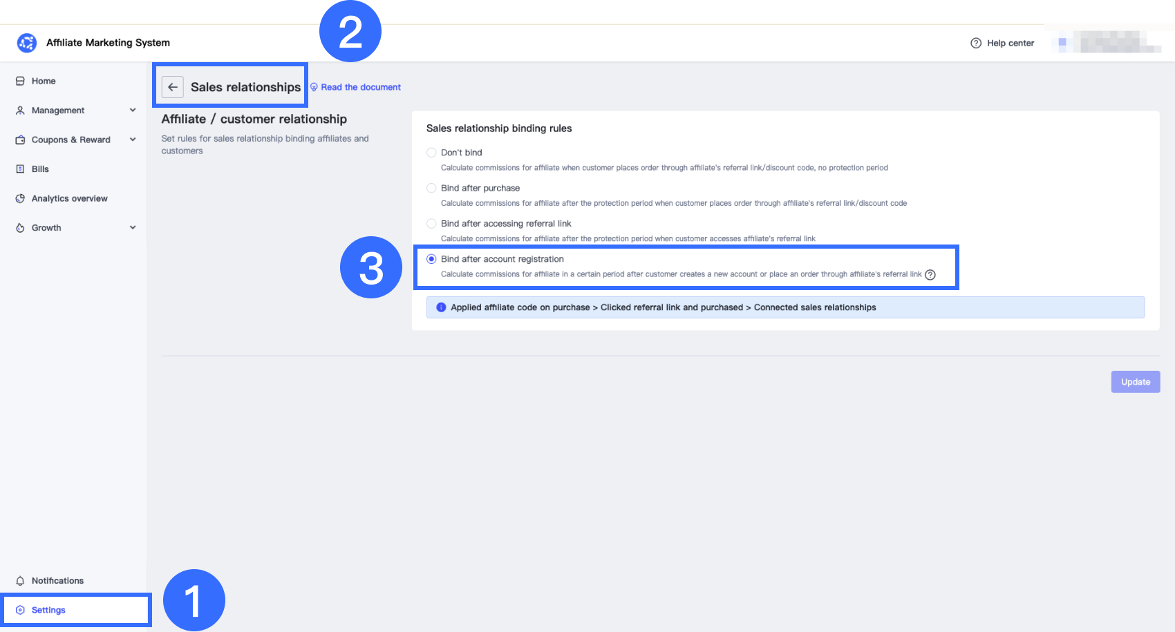 Trong Tiếp thị liên kết, làm theo hướng dẫn trong bài viết này để chọn mối quan hệ bán hàng cho các đối tác liên kết và khách hàng của bạn. Để thiết lập mối quan hệ khách hàng - đối tác liên kết vĩnh viễn, chọn Liên kết sau khi đăng ký tài khoản.