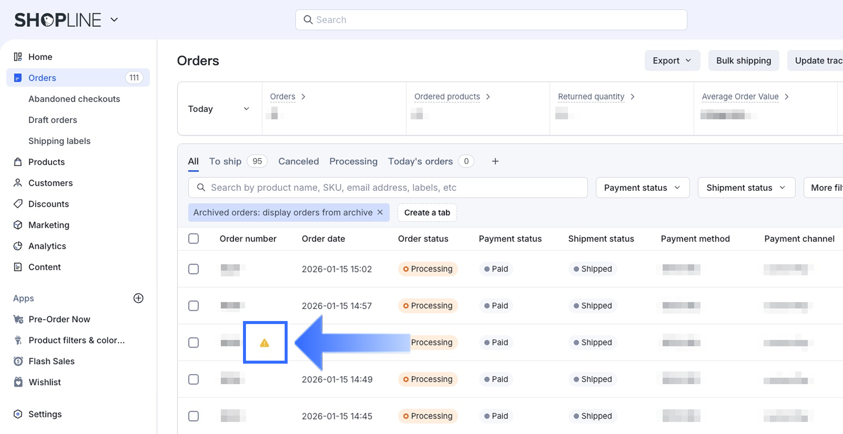 - Từ bảng điều khiển quản trị SHOPLINE của bạn, đi đến Đơn hàng.