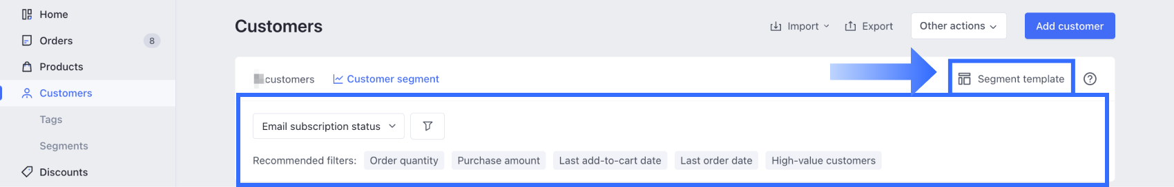 Bạn cũng có thể sử dụng Mẫu phân khúc hoặc tạo các phân khúc trống để lọc khách hàng và thêm họ vào các phân khúc.
