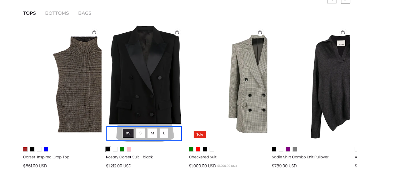 Di chuột qua thẻ sản phẩm sẽ hiển thị các biến thể khác, chẳng hạn như biến thể kích thước, trong hình ảnh.