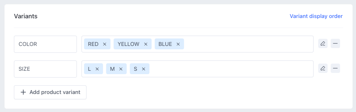 - Sản phẩm phải có một biến thể màu cho một kiểu nhất định; nếu ngôn ngữ ở phía khách hàng là tiếng Anh, tên biến thể cần phải là "color".