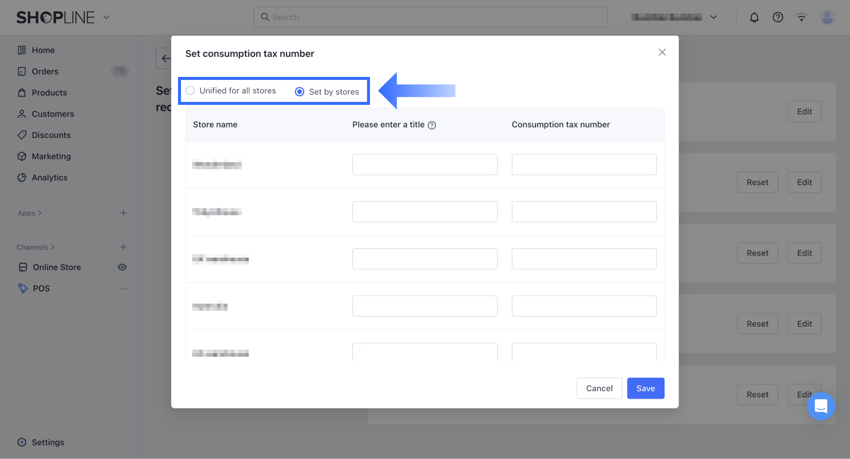 - Cấu hình số thuế trong Số thuế tiêu thụ. Bạn có thể đặt một số thuế thống nhất hoặc chỉ định các số thuế khác nhau cho mỗi cửa hàng.