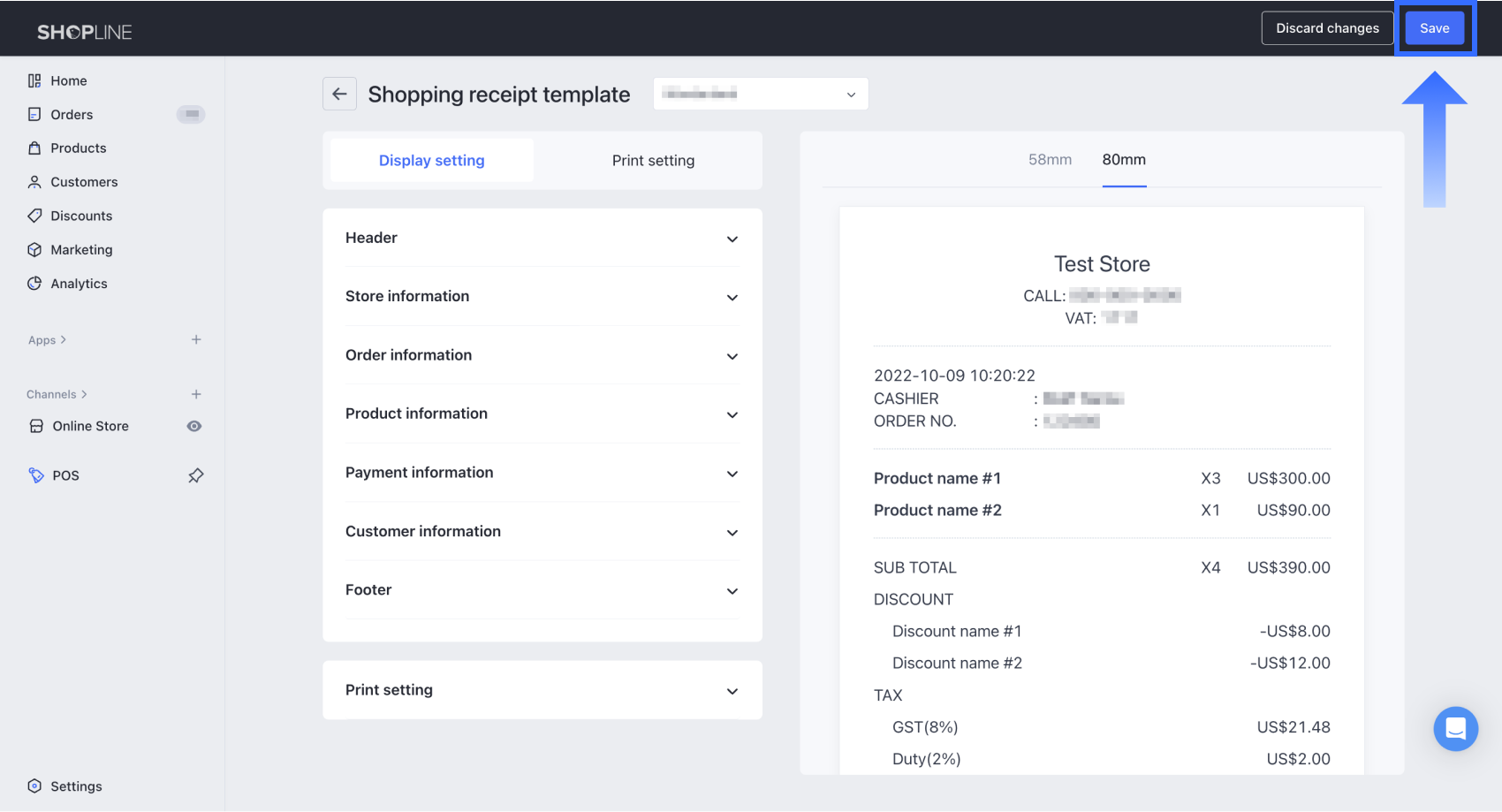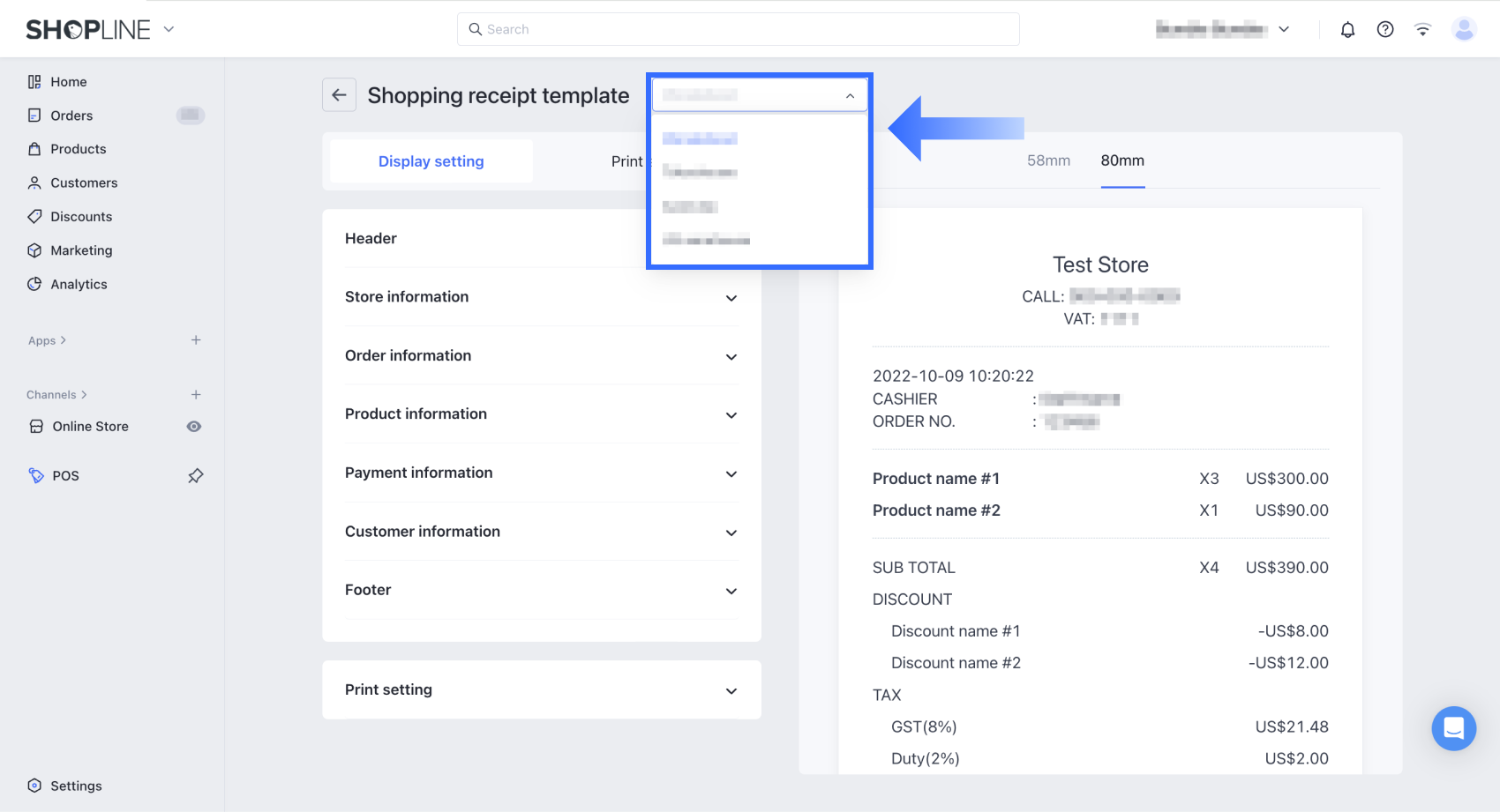 SHOPLINE POS hỗ trợ tùy chỉnh mẫu cho các biên nhận in dưới các tình huống giao dịch khác nhau. Bạn có thể in biên nhận cho các tình huống giao dịch cụ thể để cung cấp thêm sự đảm bảo cho khách hàng.