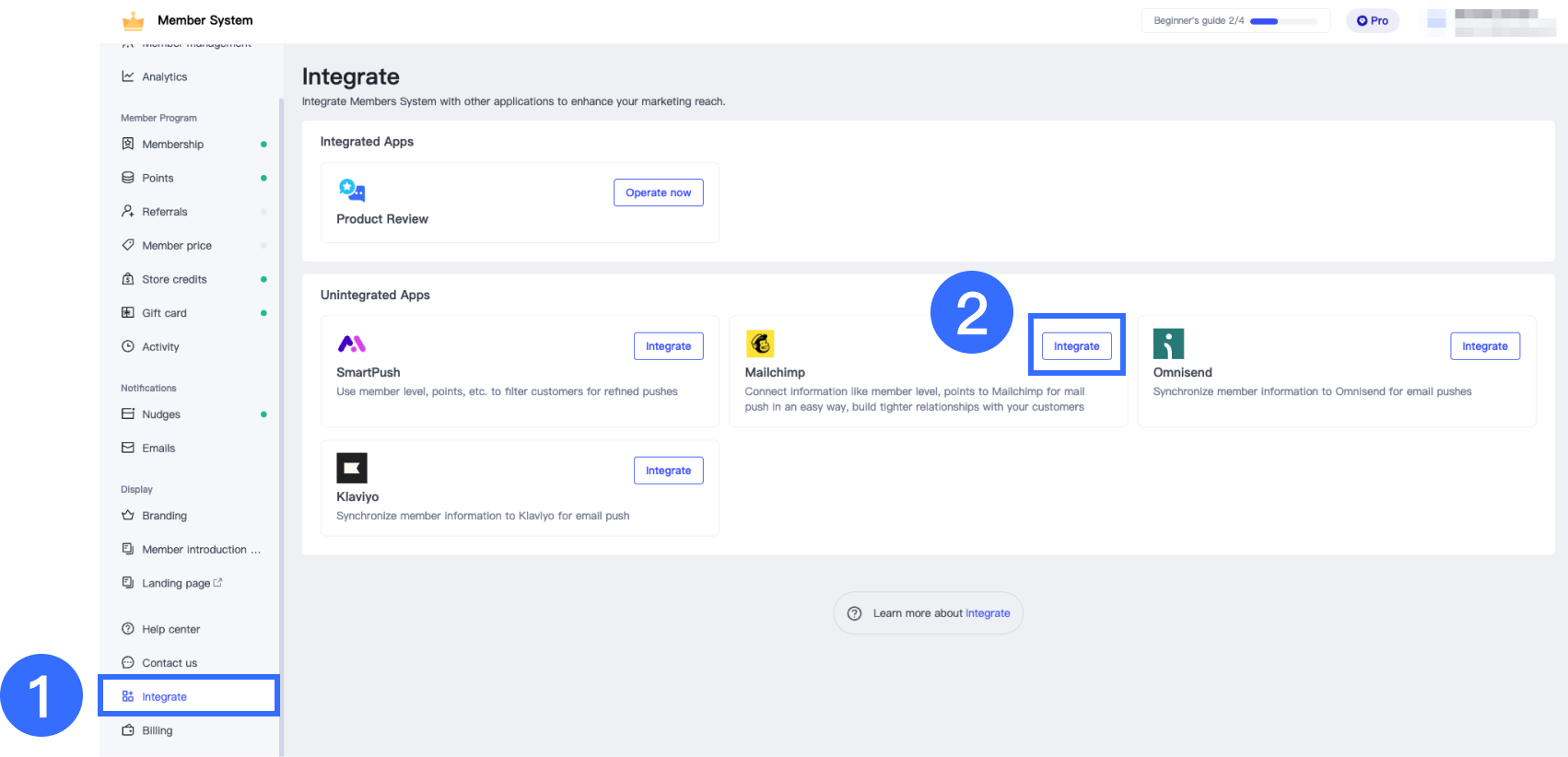 - Đầu tiên, đi đến Hệ thống Thành viên > Tích hợp > Ứng dụng đã tích hợp.
