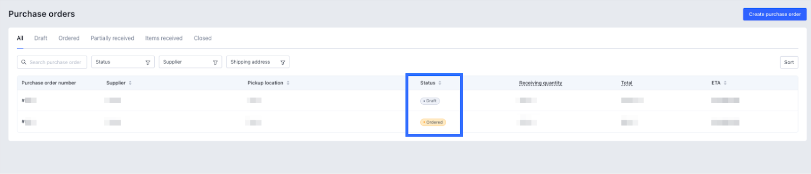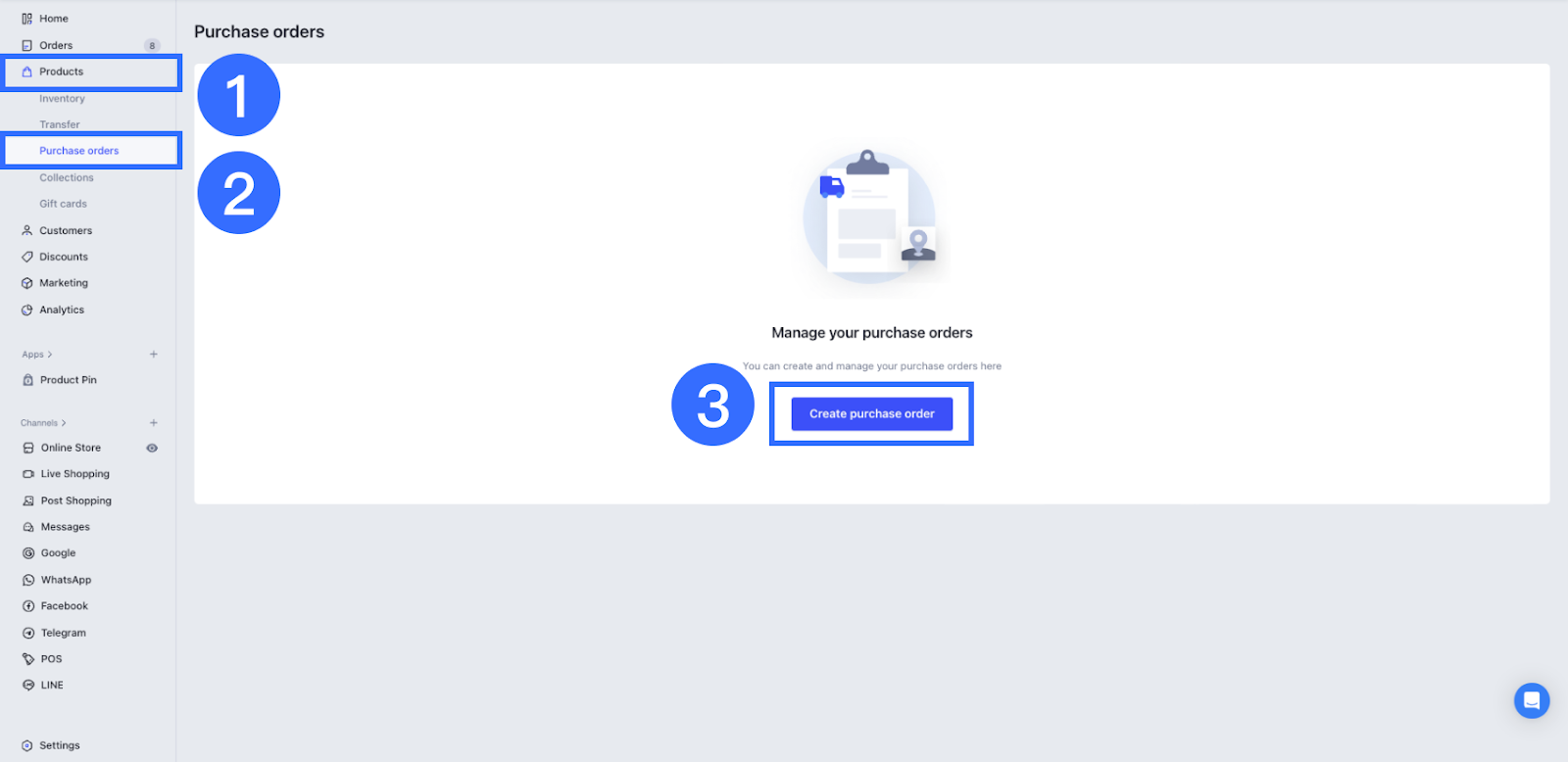 Bạn có thể tạo đơn đặt hàng trong bảng điều khiển SHOPLINE, có thể được lưu dưới dạng Bản nháp để sử dụng trong tương lai hoặc được đánh dấu là Đã đặt hàng. Khi một đơn đặt hàng được đánh dấu là Đã đặt hàng, số lượng hàng tồn kho cho các mặt hàng đã mua này sẽ được ghi nhận là hàng tồn kho đến tại địa điểm nhận hàng.