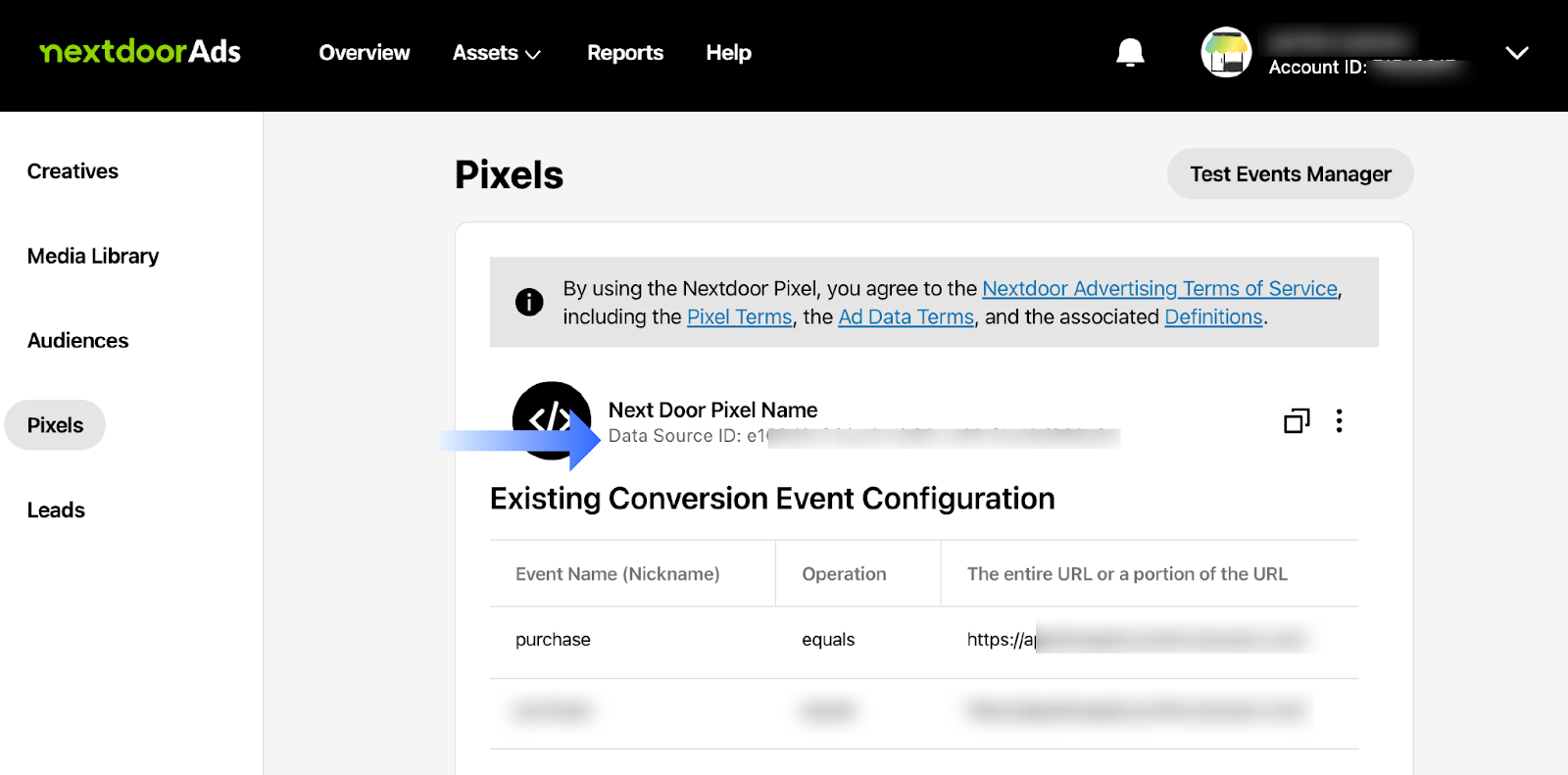 - ID Pixel Nextdoor: Để theo dõi sự kiện phía khách hàng (ví dụ: lượt xem trang, mua hàng)
