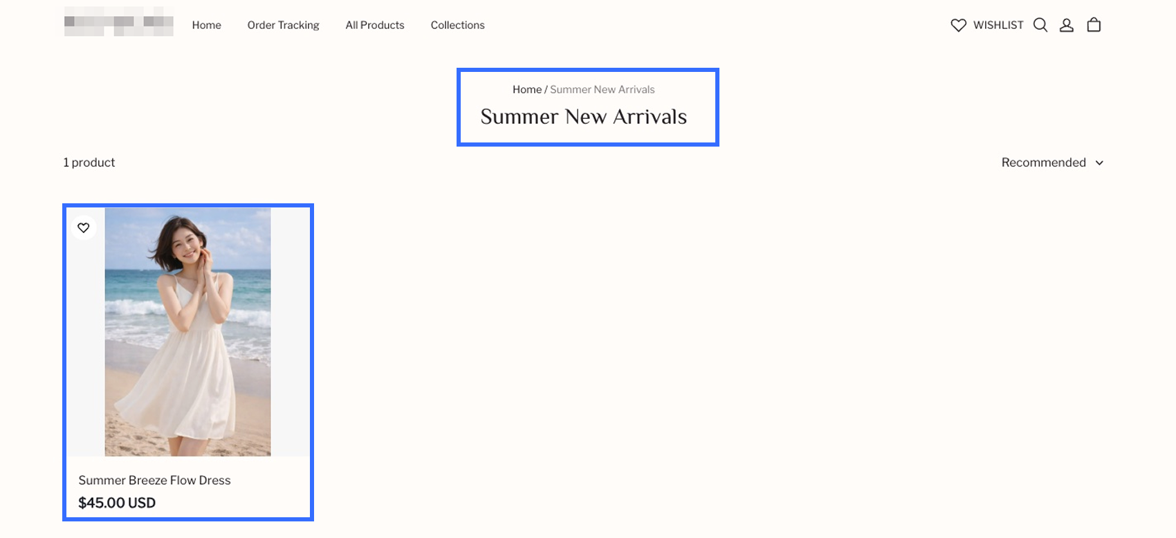 Bộ sưu tập Đầm hiển thị các sản phẩm của chính nó và các sản phẩm từ danh mục con của nó (Hàng Mới Mùa Hè), nhưng không hiển thị các sản phẩm từ danh mục cha của nó.