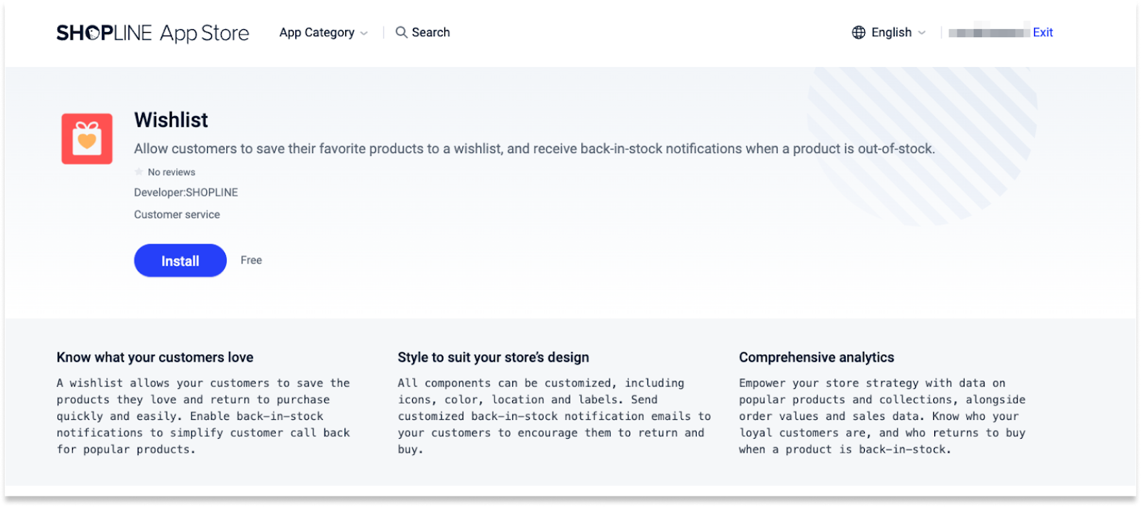 Truy cập Cửa hàng Ứng dụng SHOPLINE để cài đặt Danh sách yêu thích vào bảng điều khiển quản trị của bạn.