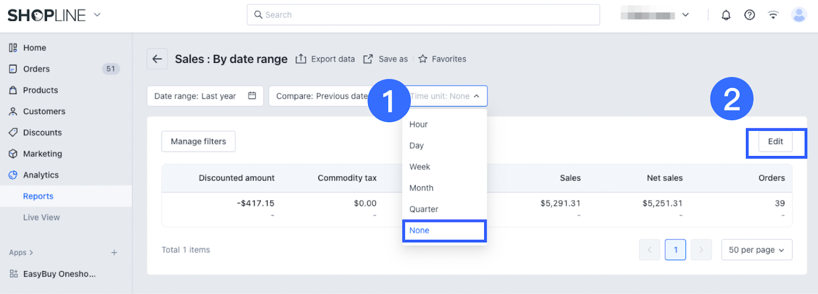 Từ bảng điều khiển quản trị SHOPLINE của bạn, đi đến Phân tích > Báo cáo.