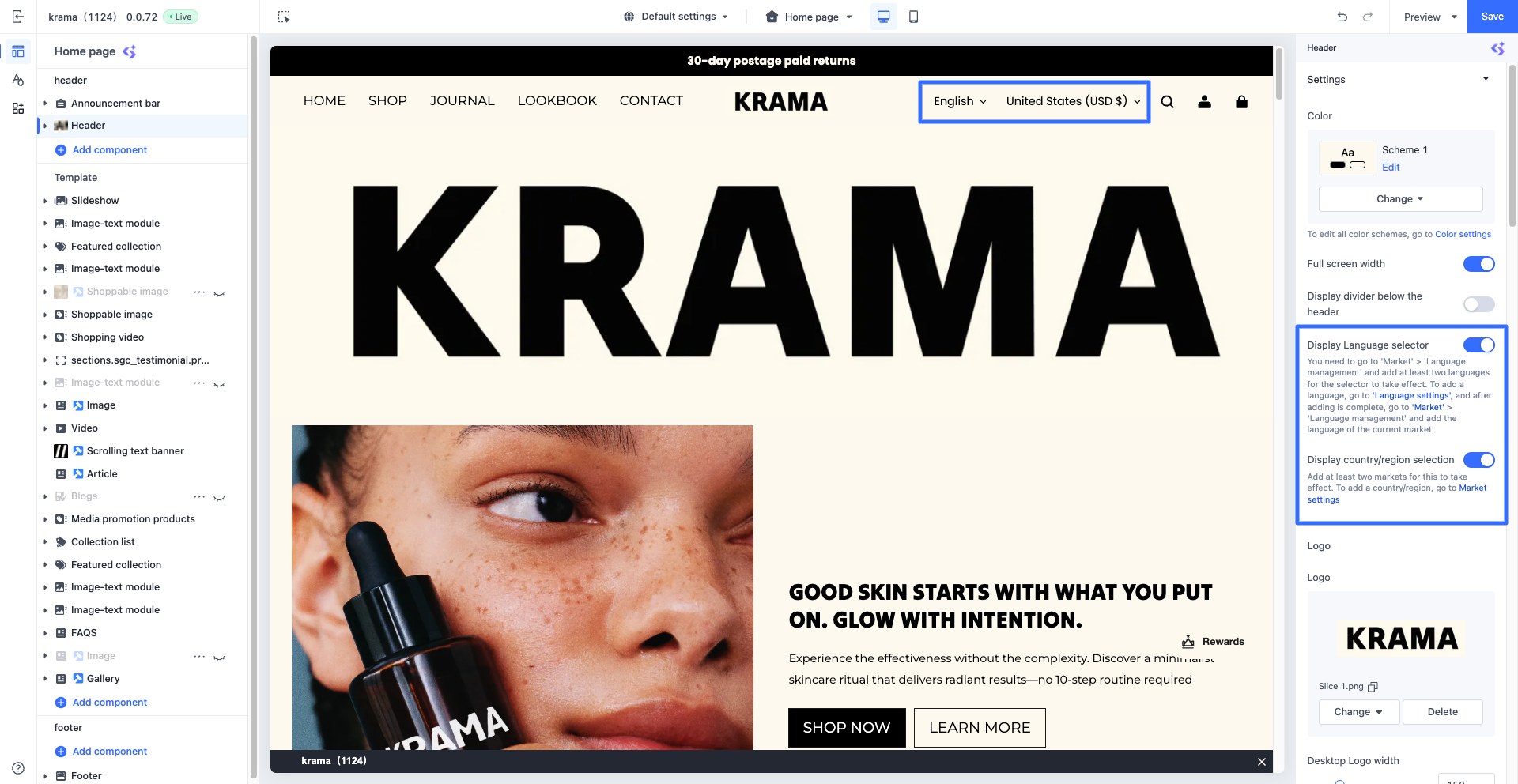 - Kích hoạt bộ chọn ngôn ngữ và quốc gia/khu vực trên cửa hàng của bạn