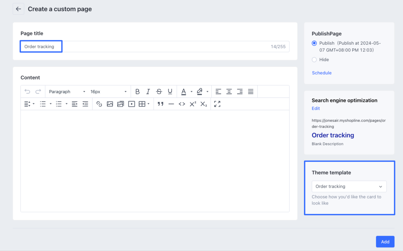 Để sử dụng mẫu trang theo dõi mặc định của SHOPLINE, hãy làm theo các bước sau: