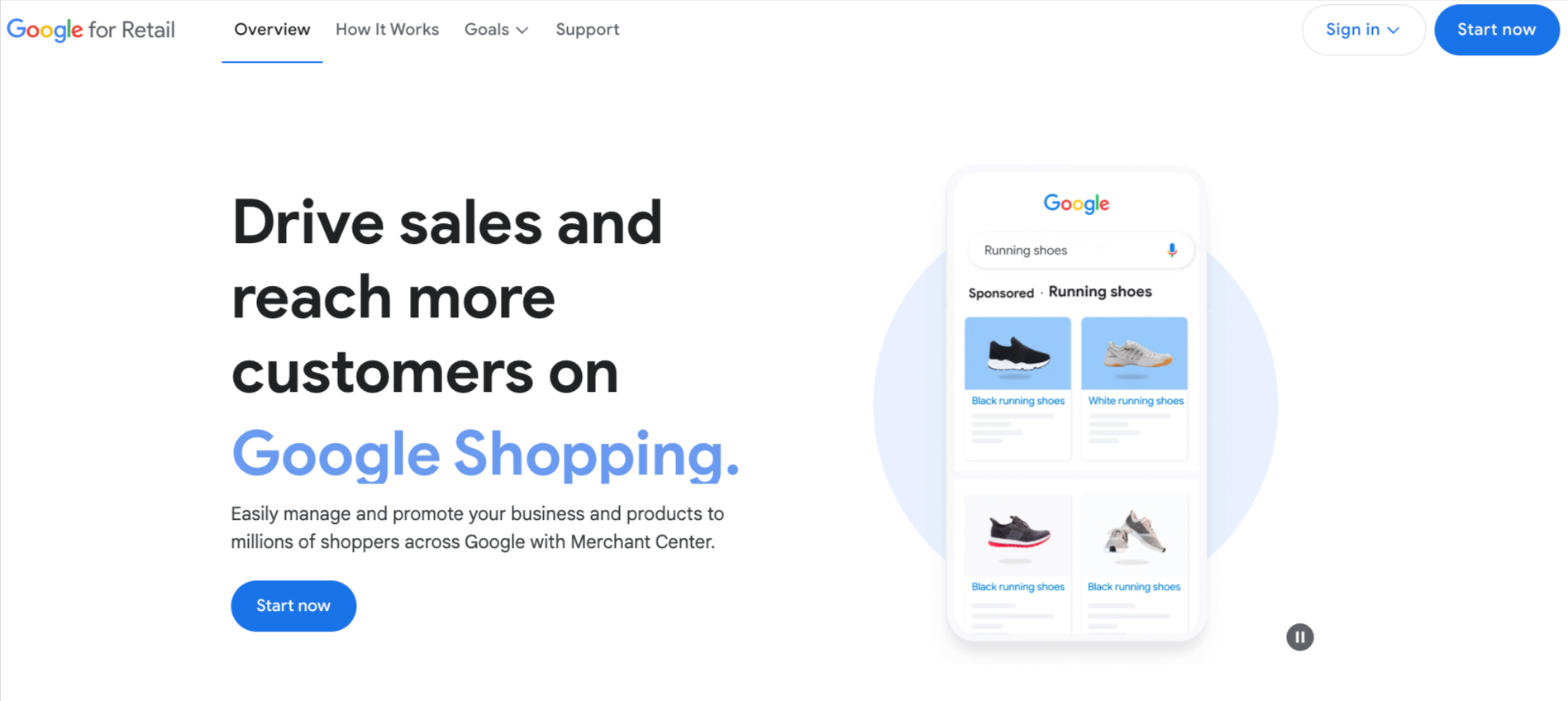 - Truy cập https://www.google.com/retail/solutions/merchant-center/. Nhấp vào Bắt đầu ngay