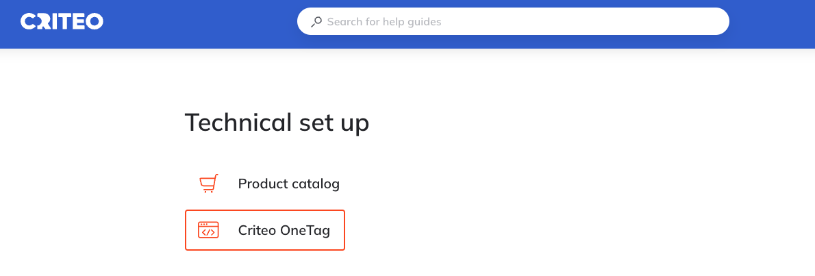 Tại trang web chính thức của Criteo Help, đi đến Cài đặt kỹ thuật > Criteo OneTag.