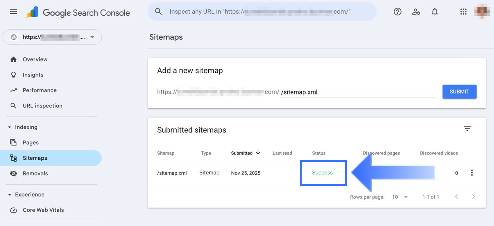 Bạn sẽ thấy một cửa sổ xác nhận thành công, và sitemap sẽ được đánh dấu là Thành công trong phần Sitemap đã gửi.